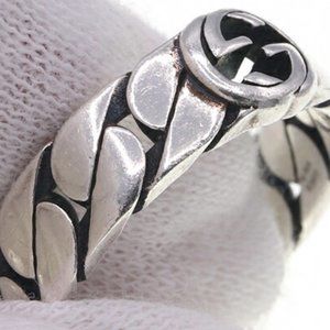 Gucci Ring Interlocking G Wide 661513 SV Sterling Silver 925 Size 18 Chain Me...