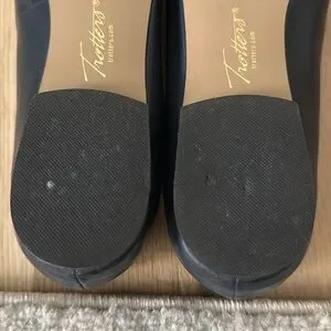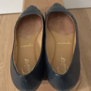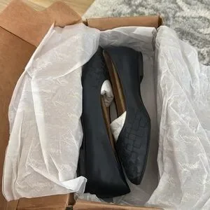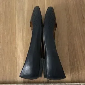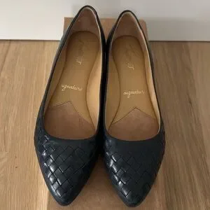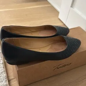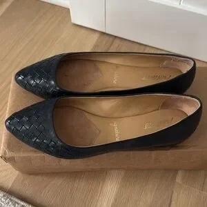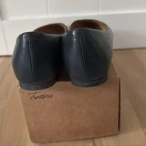 These are VGUC navy flats. Trotters Estee Woven 7M. True to size.