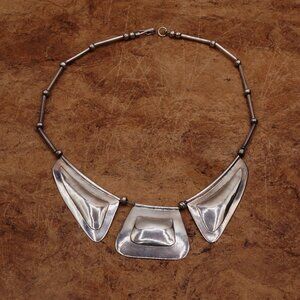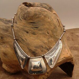 Vintage Native American Modernist Silver Bib Necklace Carlos Diaz Style 17"