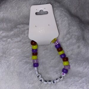 Purple and yellow “Clawdeen” Monster High themed kandi beaded bracelet