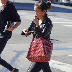 RARE Authentic Goyard Goyardine Saint Louis PM Red Shoulder Tote Bag & Pouch