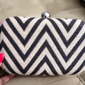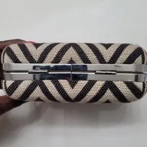 Ann Taylor Chevron Style Print Black & Tan Clutch