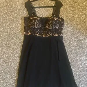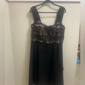 This is a perfect wedding guest dress to have in your closet. Thicker shoulder straps hide most bra straps. See length and width in the photos. Like new condition. Very comfortable for a night out or a night of dancing.