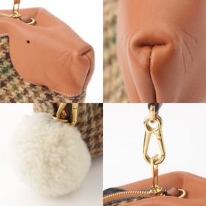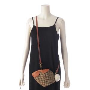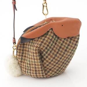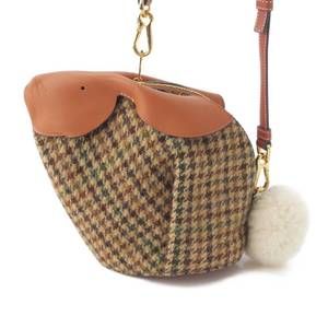 Loewe Bunny Tweed x Leather Check Shoulder Bag Brown