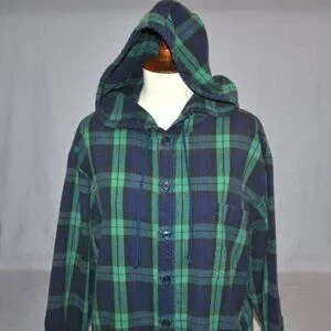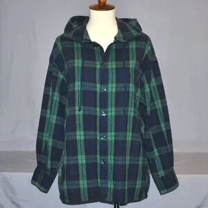 The Limited, Limited Jeans, Express, 90s, 1990s, 80s 1980s, plaid, tartan plaid, button-down, preppy, vintage, designer, soft, comfortable, flattering, classic, chic, holiday, festive, Christmas, academia, size small, oversized, size medium, retro, green, blue, black, classic plaid, hood, hoodie shirt, fall, winter, rustic,