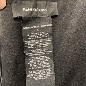 Gorgeous R&M RICHARDS evening gown, size 8. Worn once, in like-new condition. Black metallic fabric. Off-shoulder style, although, if your shoulders are wide enough, you could pull the "cap" up to your shoulder. Long mermaid style gown, fully lined with back zipper. This gown is very flattering and comfortable.