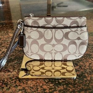 Coach Signature Canvas Wristlet, Brw/Tan EUC, like new