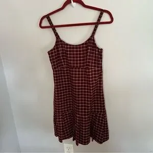 Hollister Women Size Medium Red Plaid Dress Burgundy Cotton