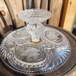 Vintage Hofbauer Crystal Swan Cake Stand 11"