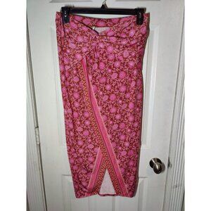 Free People Pink Floral Boho Sarong Pull On Midi Skirt Stretch M (31x36)
