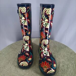 Nomad Paisley Rubber Rain Muck Buckle Boots Women's Size 9 Multi Color