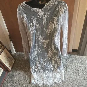 Sheer gray lace long sleeved dress by Cloe szM no designer tags