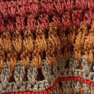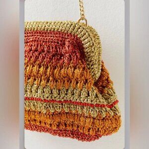 The coolest take on a forever classic, this timeless clutch-style crossbody is featured in a stunning crochet fabrication with colorful striping throughout and perfectly coordinating chain strap for an added special touch.