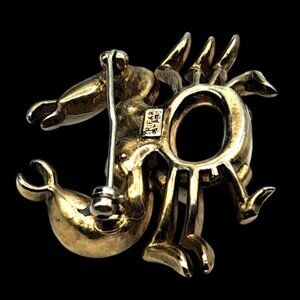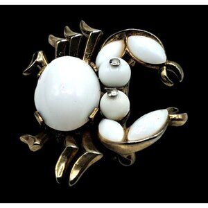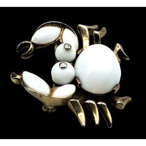 Trifari Crab Brooch Figural Pin White Rhinestone Cabochon Gold Tone Vintage Cost