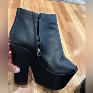 Black Giuseppe wedges. Shoes are worn. See photos for wear. Price reflects condition. Top Rated Seller and Fast Shipper