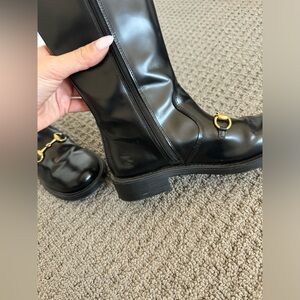 Gucci black leather boots, size 34. Pre owned.