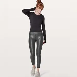 Lululemon Train Times 7/8 Pan: Luminosity Foil Print Black Silver / Black