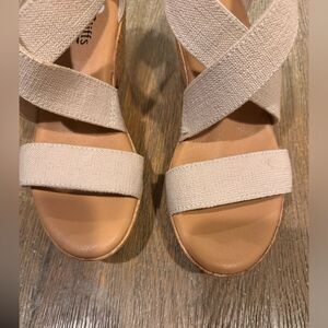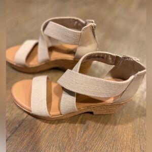 Never worn! They are the cutest wedges with a little zipper in the back. Super comfortable just too big for me. Can be dressed up or down.