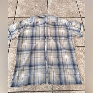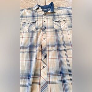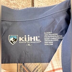 Kuhl ELuxur Short Sleeve Pearl Snap Shirt Mens Sz XL Blue Plaid Outdoor Hiking
