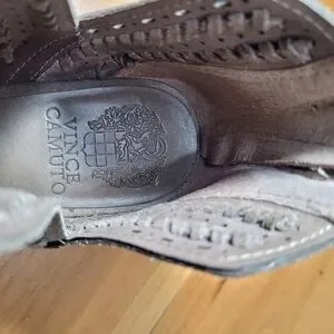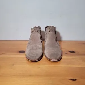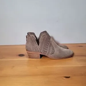 Vince Camuto Prastata Suede Woven Laser Cut Taupe Booties Womens Sz 9 Boots