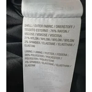 Content: shell 76% rayon/21% nylon/3% spandex; lining 96% polyester/4% spandex