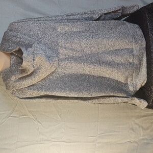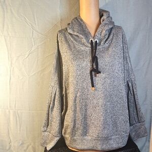 Silver gray shiny colored long sleeves pullover top with hoodie.
