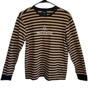 HUF Worldwide Black And Tan Striped Long Sleeve T Size Small