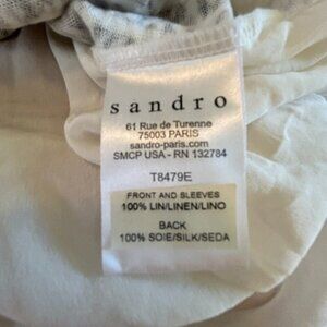 Linen Silk Blouse by Sandro Paris Womens EU 3 (Large) Chic White Tiger