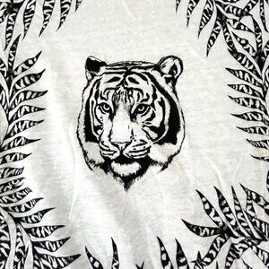 Linen Silk Blouse by Sandro Paris - Women's Size EU 3 (Large) Chic Black and White Tiger Summer Luxury Fashion