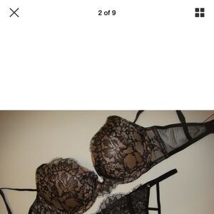 32c push up bra(I also have an unlined longline bra if interested)+Small strapping cutout panty+xs or s teddy romper+32c babydoll+stockings