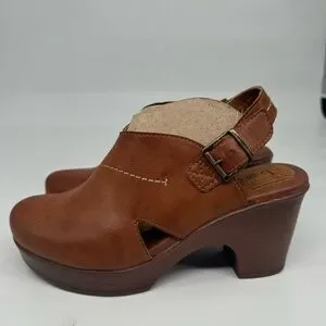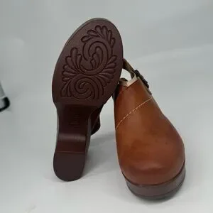 B.O.C. Women’s 8M Cecilia Brown Leather Platform Heeled Clog Clogs Shoes