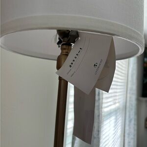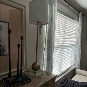 An appealing blend of glam finishes, sparkling clear crystal and off white linen combine for a timeless modern buffet lamp with understated elegance. The slender profile is perfect in pairs on a dining buffet, console or foyer table.