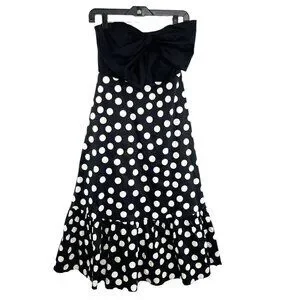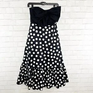 Hutch for Anthropologie Black & White Polka Dot Strapless Dress with Bow Size 4P