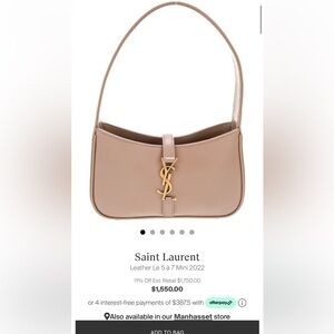 Yves Saint Laurent Smooth Calfskin Le 5 A 7 Small Hobo Rosy Sand