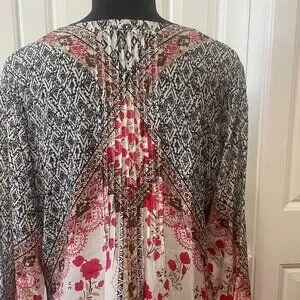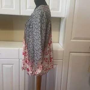Kyla Seo Anthropologie Womens Colorful Oversized Tunic Boho Pintuck Blouse S
