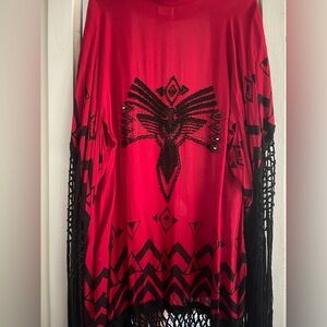 SPELL | Vintage Opium Fringe Tassel Kimono Red + Black