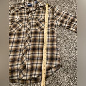 Wrangler Vintage Neutral Color Plaid Pearl Snap Long Sleeve Western Shirt