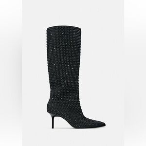 ZARA POINTED TOE RHINESTONE HEELED KNEE HIGH BOOTS