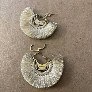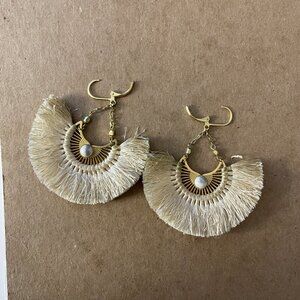 Light gold-coloured brass, coloured natural stone and coloured textile threads