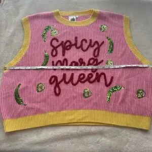 Queen of Sparkles Spicy Margarita Jalapeño Sequin Sweater Vest L NWOT