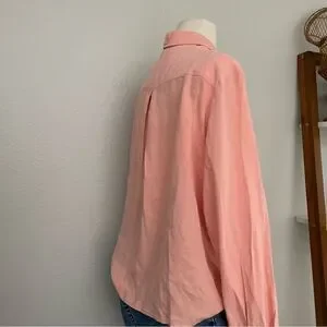 Cloth & Stone peach orange top. Button front closure. Front tie detail. Two front pockets. Collar neckline. Long sleeves. Size medium. Approximate flat measurements: Length - 22". Chest - 21.5". 100% tencel lyocell. Please ask questions, I want you to be a satisfied shopper ✨ Price is not set, don’t be afraid to offer. Happy shopping!