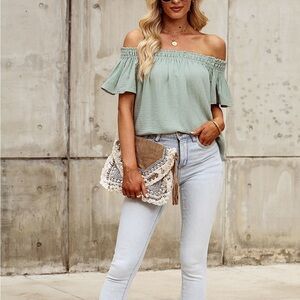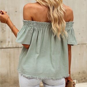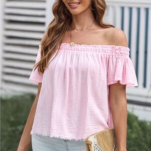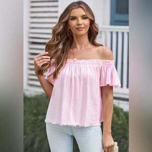 Off-Shoulder Short Sleeve Blouse Soft Cotton