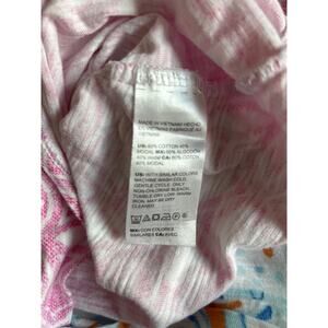 1. pink and white; short sleeve, v neck, cotton modal blend
