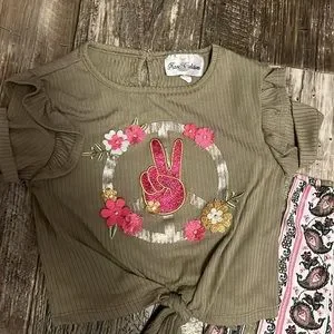 Rare Editions Peace Flare Pants Matching Set Hippie 5 girls