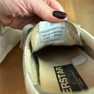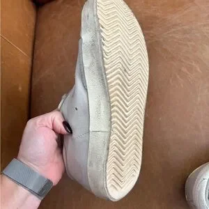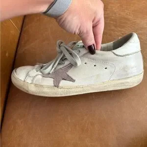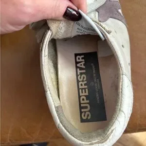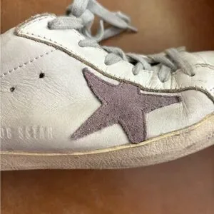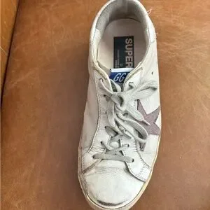 Golden Goose Superstar GGDB low top distressed sneakers with purple stars