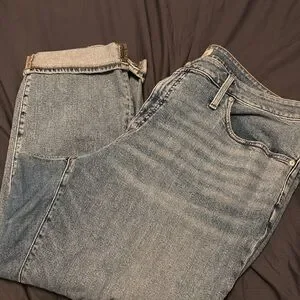 The cut: Comfy and flattering, our high-rise girlfriend jeans a slim-meets-relaxed leg (perfect for when you are branching out from skinnies). The fabric: Vintage-y denim with a touch of stretch for a broken-in feel.