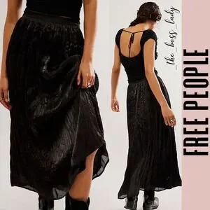 Free People skirt midi black pleated party cocktail