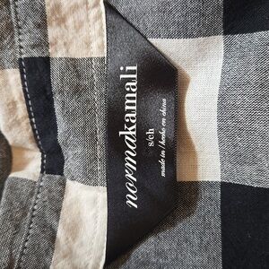 Norma Kamali Button Down Flannel Shirt Black White Buffalo Check Plaid Fitted
