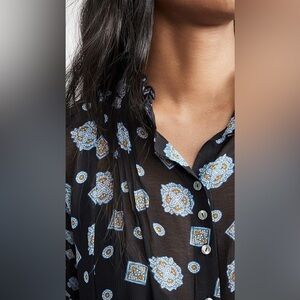 The collarless shirt becomes an effortless shirtdress in this sweet number from Free People. Stun everyone!
