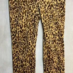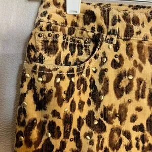 Chicos Size 1 Tall Leopard Print Corduroy Pants with beading on pockets